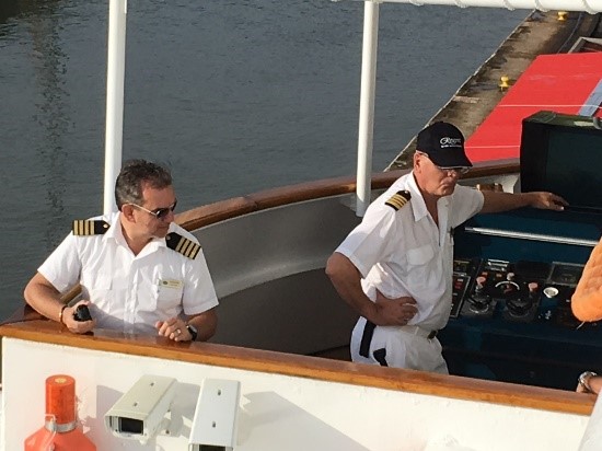 The captain directed operations from a mobile workstation on a cantilevered balcony so that he had an uninterrupted view of the canal and we had an uninterrupted view of him. We could see what was happening from every angle all day – it was really terrific. And, if anyone felt the need of a lie down during the long day, they still had a ringside seat, as it were, via the bridge dash cam relayed to all cabins 24/7 throughout the entire cruise. We were given maps of the canal and, later that evening, received personalised certificates as a memento.